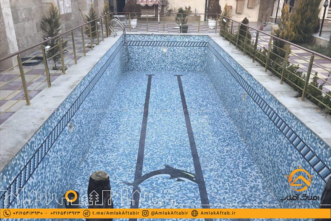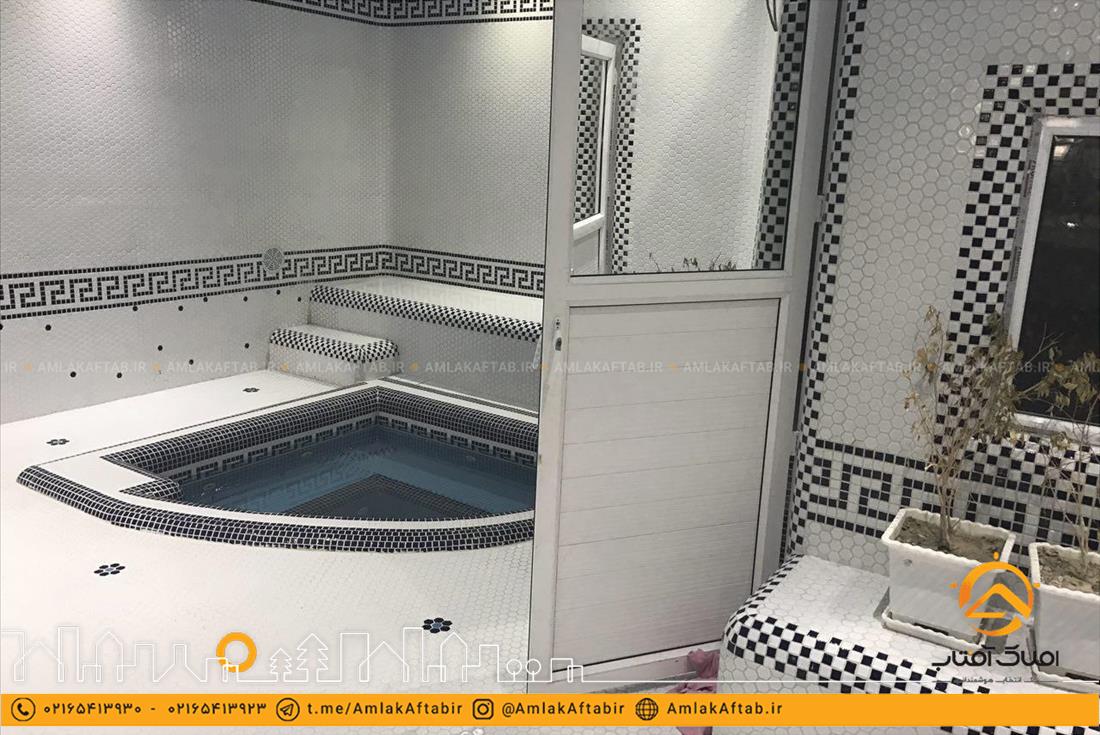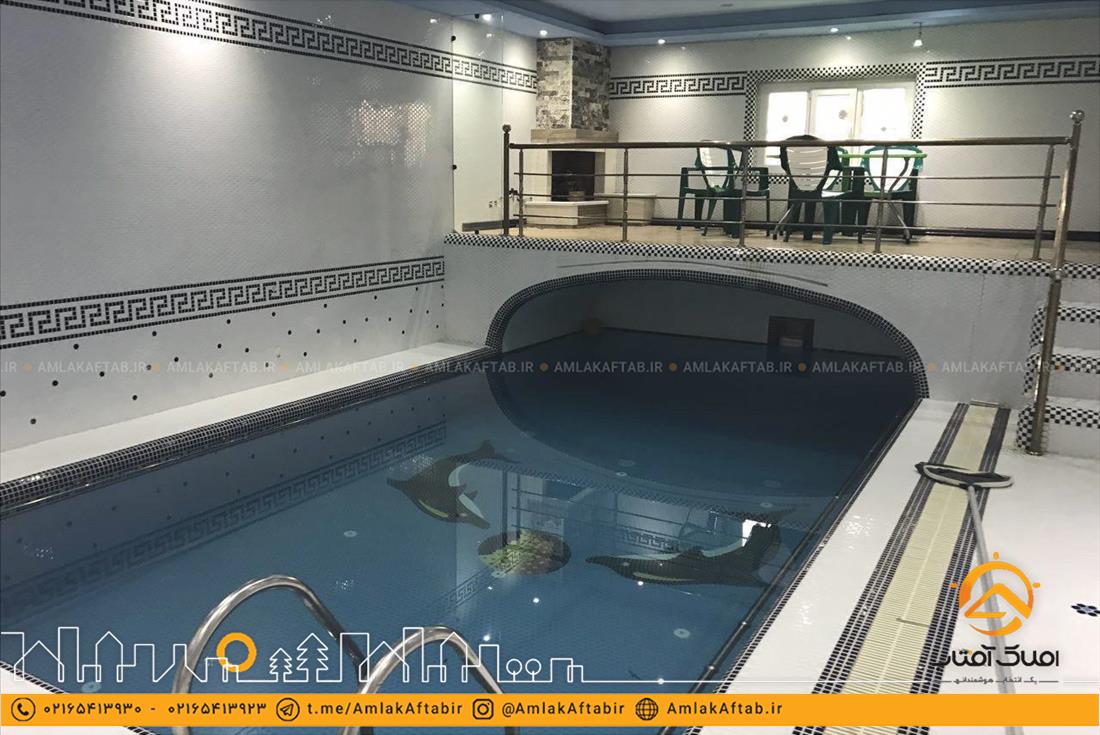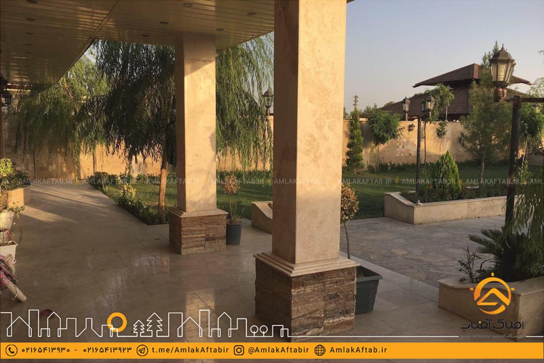 فروش باغ ویلا با مساحت 1750 متر در لم آباد ملارد که دارای 350 متر ویلای دوخوابه با انشعابات کامل از جمله آب ، برق و گاز . فضای باغ محوطه سازی شده و همچنین دارای دو استخر مجزا یکی به صورت سرپوشیده و دیگری روباز در فضای باغ با تجهیزات و موتورخانه مجهز و کامل قرار گرفته است. در این باغ ویلا انواع درختان میوه و تزیینی نیز کاشته شده است.