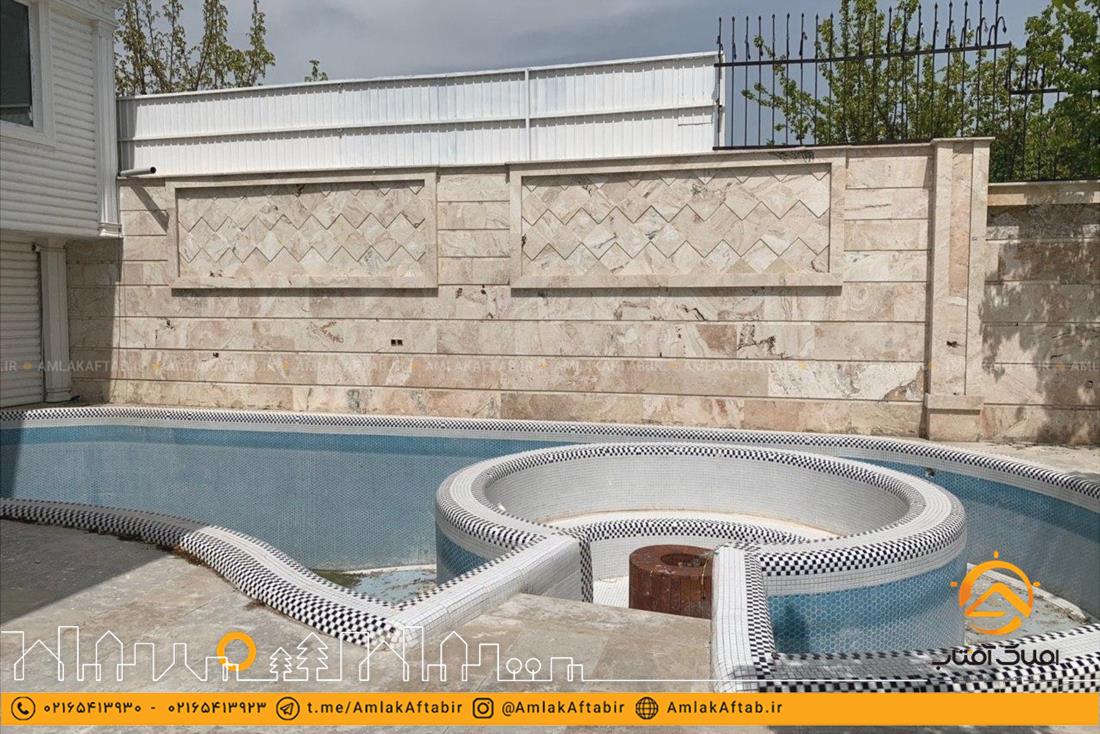 فروش باغ ویلا با مساحت 800 متر در منطقه ویلایی لم آباد شهرستان ملارد، دارای 170 متر ویلا دوبلکس با دو اتاق خواب مستر ، سنددار با انشعابات کامل در داخل یک مجموعه ویلایی با نگهبانی 24 ساعته می باشد. در فضای باغ محوطه سازی انجام شده و درختان میوه مثمری نیز در آن قرار دارد. این باغ ویلا نیز دارای استخر با تجهیزات کامل در مجاورت ویلا می باشد.