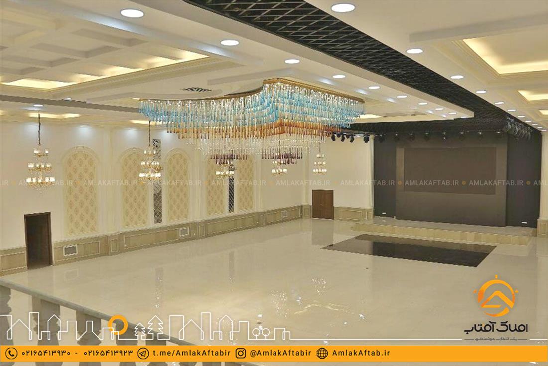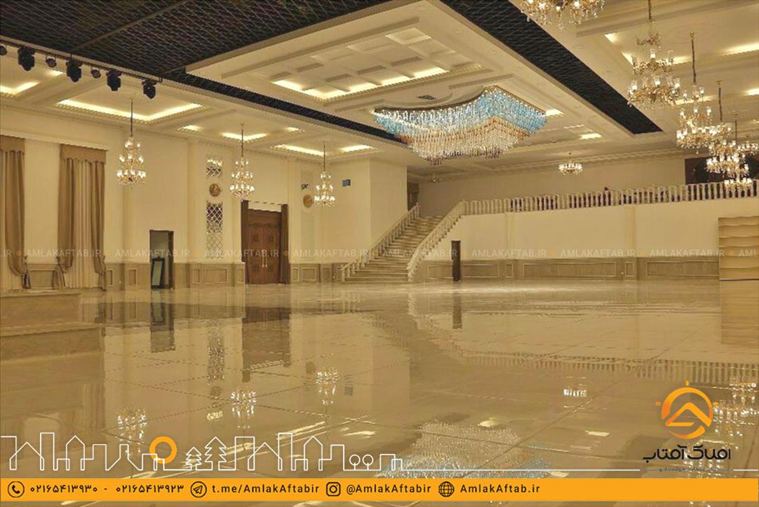 تالار پذیرایی بسیار لوکس به مساحت 8210 متر واقع در منطقه شهریار به همراه مجوز و جواز کسب پذیرایی و همچنین پایان کار شهرداری آماده فروش می باشد. این تالار پذیرایی دارای 200 متر سالن و 70 متر فضای اداری می باشد. از ویژگی های این تالار پذیرایی می توان به ویلای شخصی آن اشاره کرد که به صورت مجزا ساخته شده است. این تالار هیچ گونه بدهی ندارد و تمام بدهی های مربوط به اداره مالیات و بیمه تسویه گردیده است. انشعابات این ملک کامل و قانونی دریافت شده و دارای دو عدد کنتور برق سه فاز و دو عدد چاه عمیق نیز است.