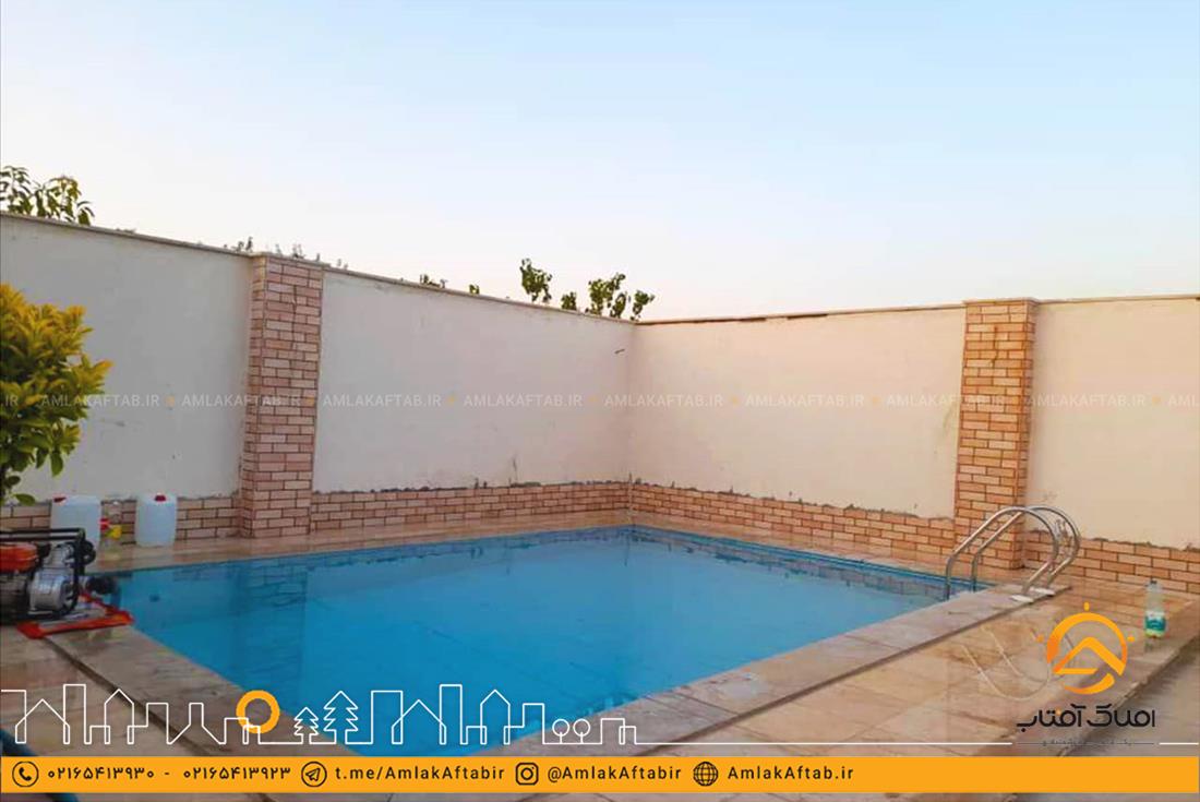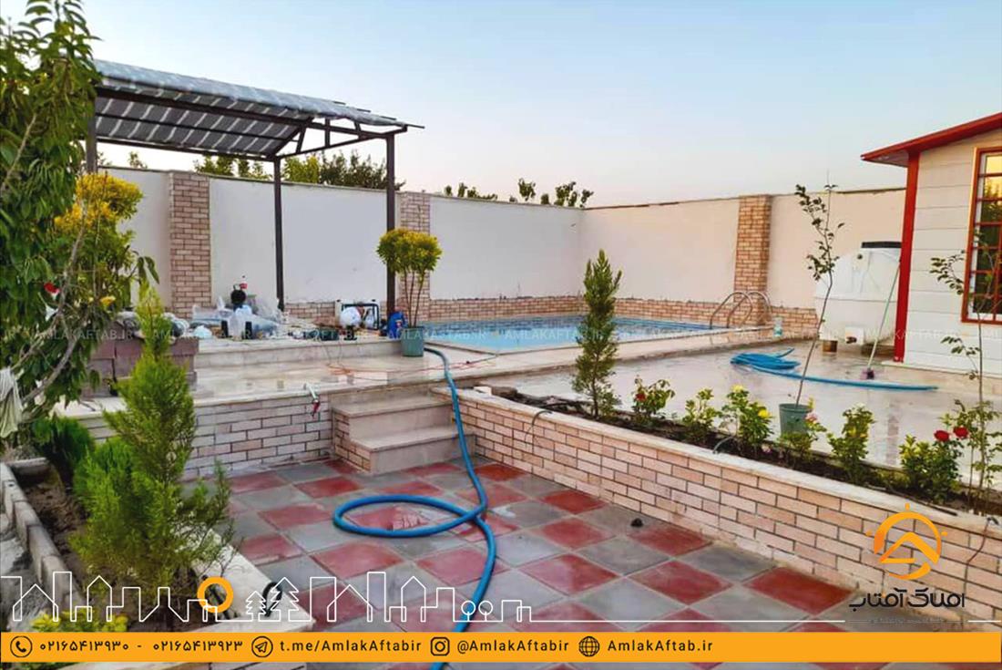 باغ ویلا نقلی به مساحت 550 متر مربع واقع در منطقه ویلایی اسفند آباد ملارد با 20 متر بنا آماده فروش می باشد. این باغ ویلا در یک مجموعه ویلایی با نگهبانی 24 ساعته قرار گرفته که باعث بالا رفتن امنیت ملک می شود. این باغ ویلا در ملارد دارای انشعابات و امکانات کاملی از جمله استخر روباز در مجاورت بنا ، محوطه سازی شیک و بسیار زیبا و همچنین دارای درختان میوه متنوع و مثمر ثمر با سهمیه آب کشاورزی است.
