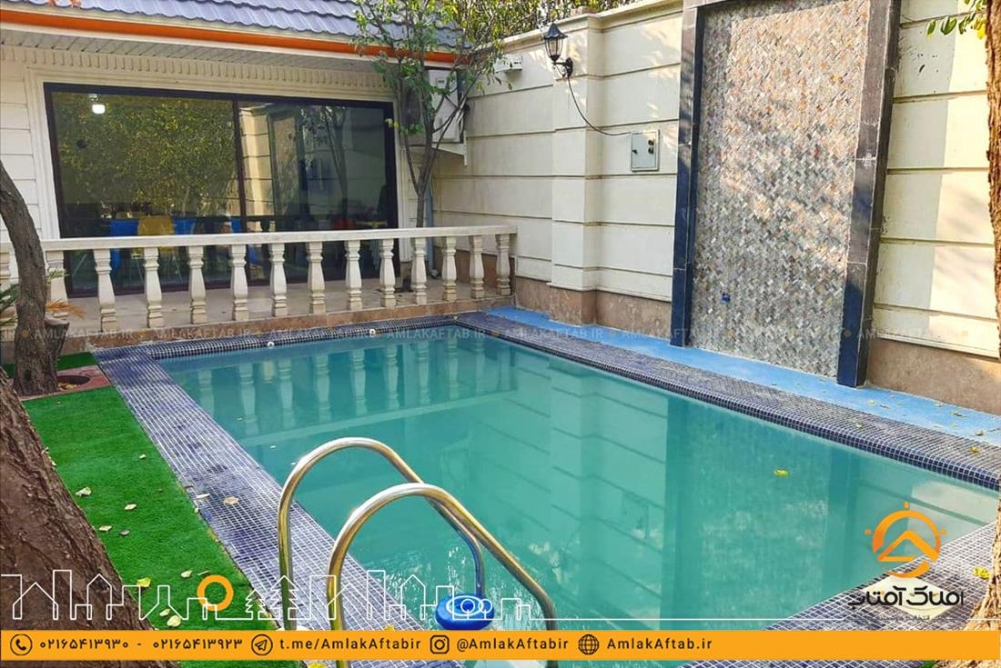 از دیگر ویژگی های این ویلا نقلی می توان به استخر آن که در مجاورت بنا ساخته شده اشاره کرد که دارای تاسیسات کامل از جمله تصفیه خانه می باشد. محوطه سازی اصولی و بسیار زیبایی نیز در فضای باغ انجام شده که شامل چمن مصنوعی ، گل های زینتی و آب نما می باشد.
