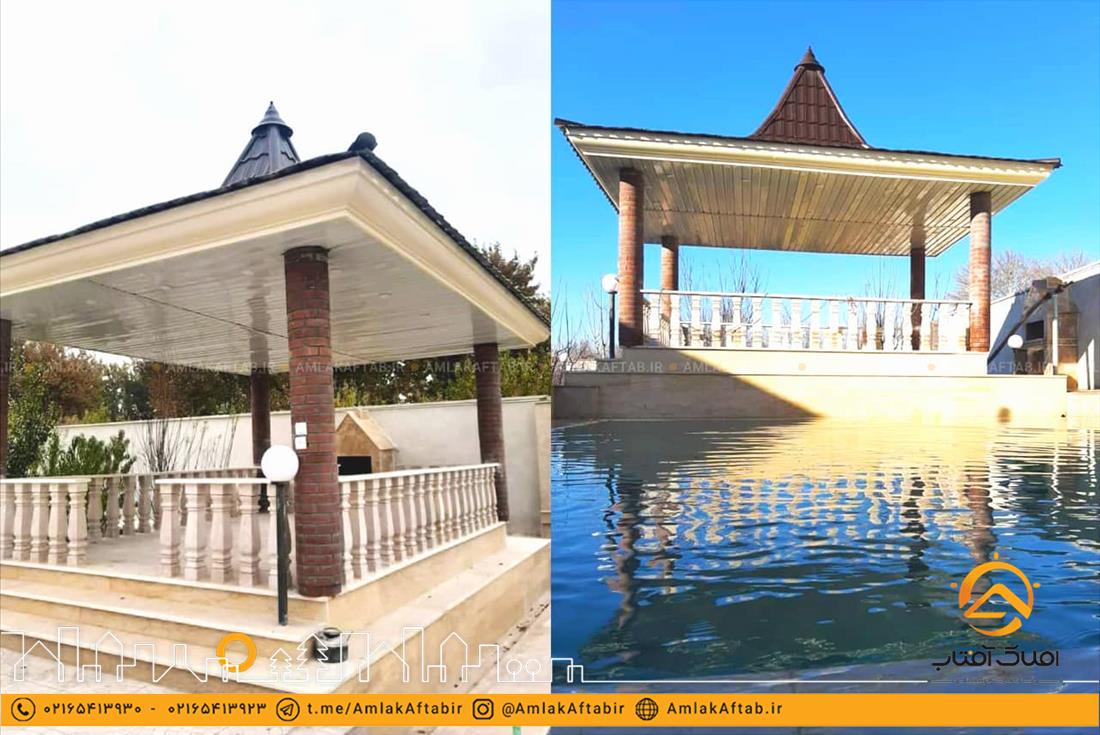 از دیگر امکانات این باغ ویلا در شهریار می توان به استخر با تاسیسات کامل و در مجاورت آن آلاچیق بزرگ و زیبا اشاره کرد. محوطه سازی و نورپردازی قابل قبولی نیز در این باغ ویلا انجام شده و تمام نما کف آن سنگ کاری شده است.