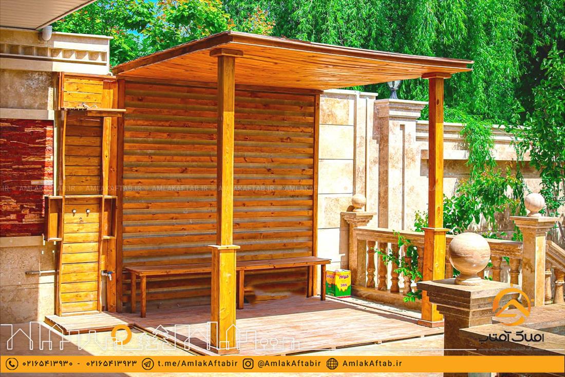 - دارای آلاچیق چوبی و باربیکیو در فضای باغ