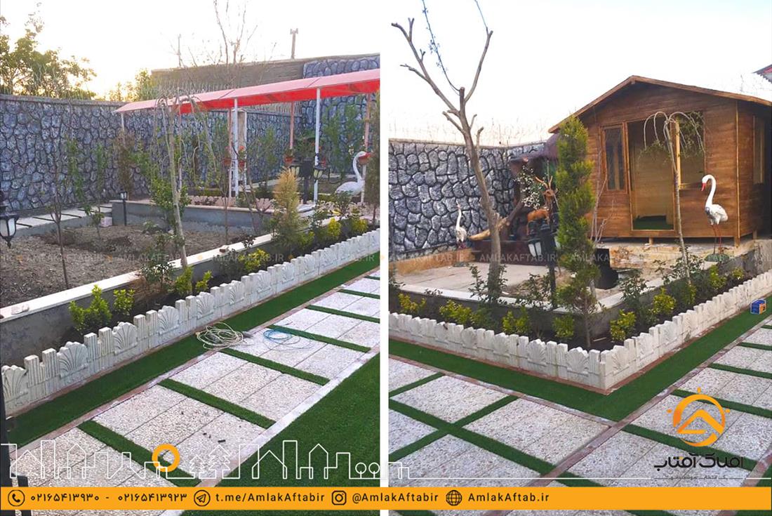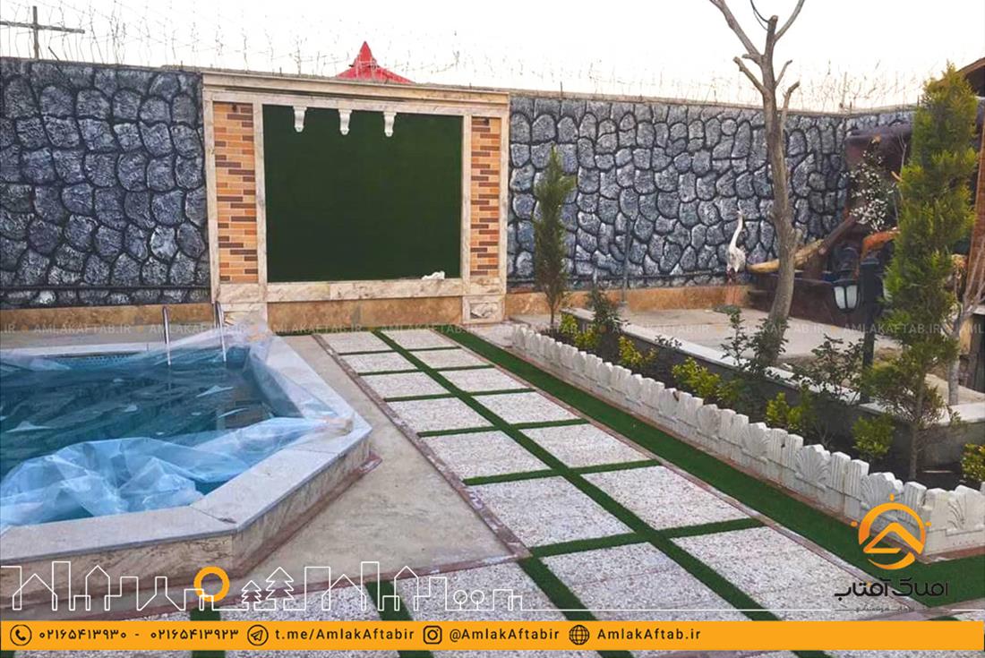 باغ ویلا بسیار زیبا و شیک به مساحت 650 متر به همراه 80 متر بنا ، واقع در منطقه ویلایی و سرسبز لم آباد ملارد، آماده فروش می باشد. بنای این باغ ویلا دارای یک اتاق خواب ، کف سرامیک و کابینت از جنس هایگلاس می باشد. انشعابات این ملک کامل بوده و دارای قدمت بنا و بدون هیچ گونه مشکلی در جهاد کشاورزی می باشد.