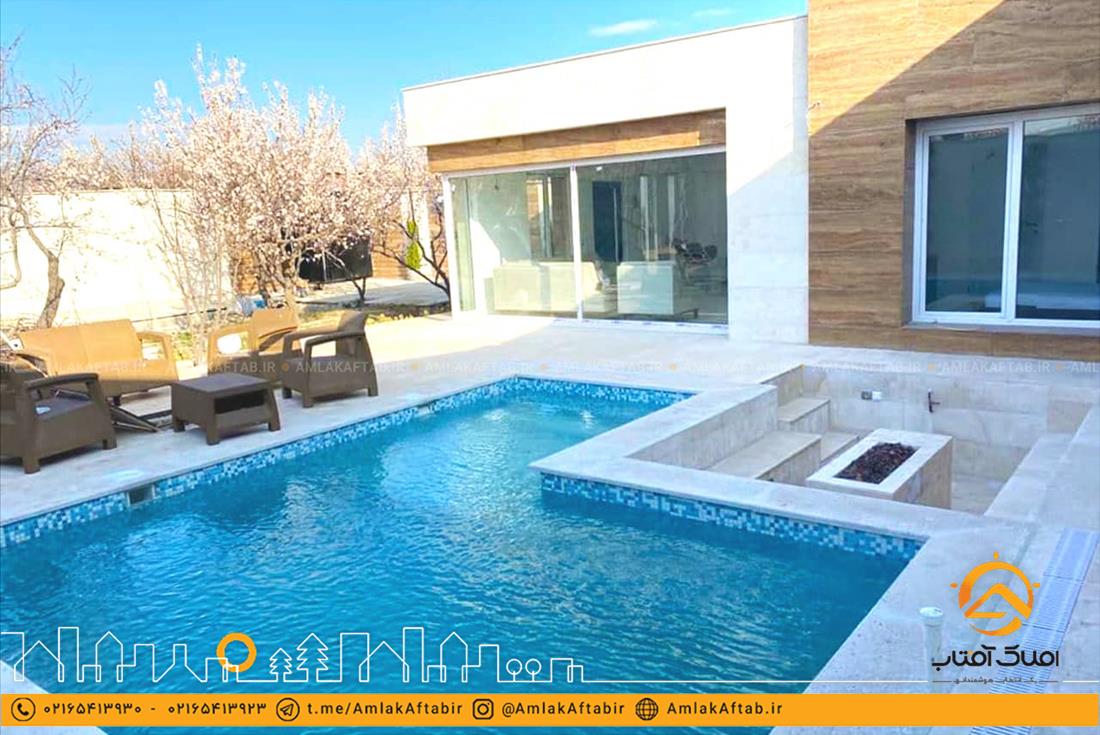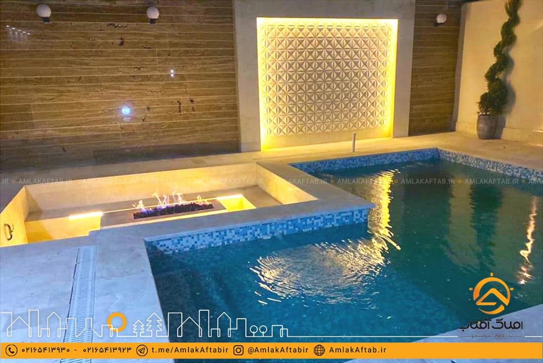 از امکانات این ویلا در ملارد می توان به استخر روباز در مجاورت بنا با تصفیه خانه ، نورپردازی و محوطه سازی زیبا اشاره کرد. در فضای باغ و در مجاورت استخر آتشکده بسیار زیبایی ساخته شده که زیبایی این محوطه را دو چندان کرده است.