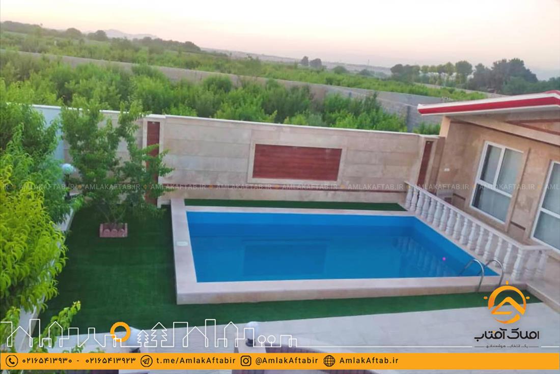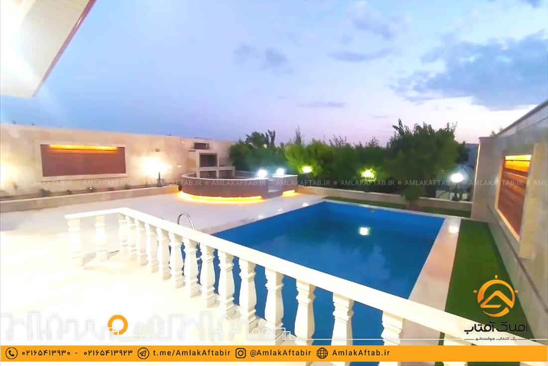 از امکانات این باغ ویلا در شهریار می توان به استخر روباز ، آتشکده زیبا، آلاچیق و باربیکیو اشاره کرد. فضای باغ ویلا به صورت کامل نورپردازی و محوطه سازی شده که جلوه زیبایی را به این ملک بخشیده است. همچین ملک در موقعیت بسیار خوبی از شهریار واقع شده و دارای دسترسی خوبی به منطقه می باشد. در صورت نیاز به اطلاعات بیشتر در مورد این باغ ویلا زیبا در فرارت ، می توانید با مشاورین مجرب ما در املاک آفتاب تماس حاصل فرمایید.