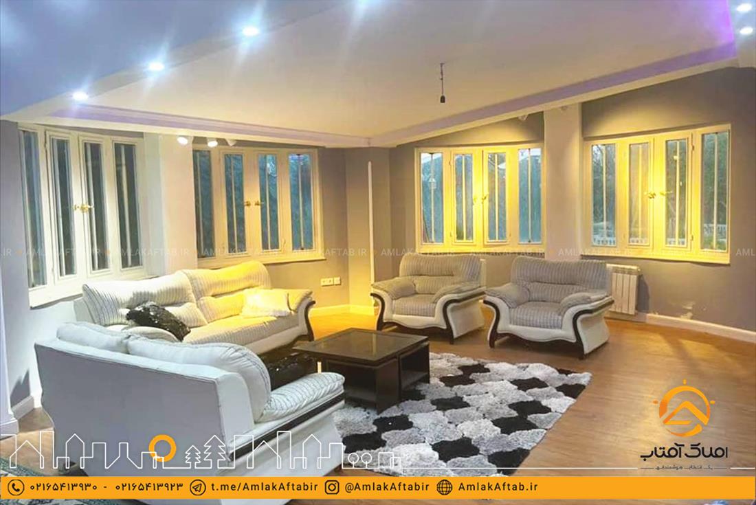 باغ ویلا فوق العاده لوکس و زیبا به مساحت 500 متر به همراه 250 متر بنا دوبلکس ، در بهترین موقعیت از منطقه ماهدشت کرج ، آماده فروش می باشد. بنای این باغ ویلا لوکس دارای سه اتاق خواب می باشد که دو خواب آن به صورت مستر ساخته شده و در تمام این اتاق ها اسپیلت تعبیه شده است. این بنا بسیار لوکس و مدرن ساخته شده و در ساخت آن از بهترین متریال استفاده شده است. این بنا لوکس دارای کف لمینت ، کابینت و کمد دیواری از جنس ممبران ، سیستم پکیج و رادیاتور و همچنین شومینه می باشد. این ویلا همچنین دارای 20 متر تراس با چشم اندار فوق العاده زیبا می باشد .