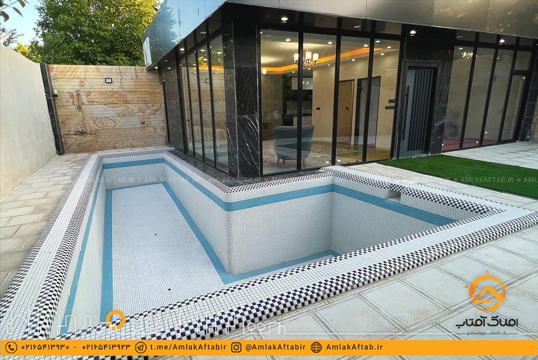 باغ ویلا در منطقه ملارد با دسترسی عالی به مراکز رفاهی و تجاری منطقه به متراژ 500 متر به همراه 80 متر ویلا به سبک مدرن به فروش می رسد. این ویلا دارای دواتاق خواب میباشد که یک خواب به صورت مستر ساخته شده است. از دیگر ویژگی های این باغ ویلا می توان به استخر چهارفصل ، محوطه سازی و نورپردازی و همچنین دارای آلاچیق و آتشکده شکیل می باشد.