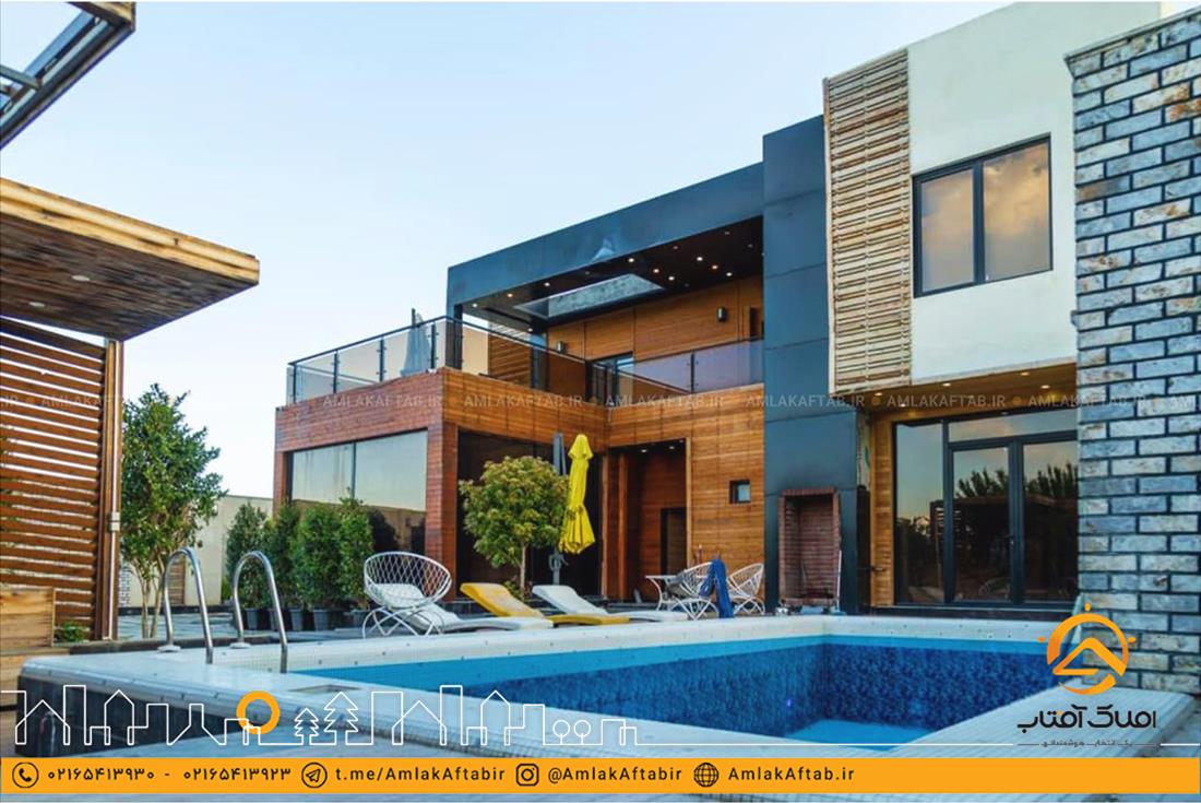 باغ ویلا بسیار لوکس و لاکچری به سبک مدرن با 1750 متر مساحت در بهترین لوکیشن لم آباد به فروش می رسد. این باغ ویلا در ملارد دارای 450 متر بنا به صورت چهارخوابه می باشد و امکانات و انشعابات آن کامل است. این ویلا دارای استخر چهارفصل ، محوطه سازی و نورپردازی ، آلاچیق و زمین بازی چمن شده می باشد. باغ ویلا معرفی شده به صورت فول فرنیش (مبله) و با سند تک برگ به فروش می رسد
